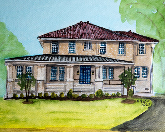 Watercolor and Ink Achitechtural Portrait On Cold Pressed Fine Art Paper - Various Sizes Available
