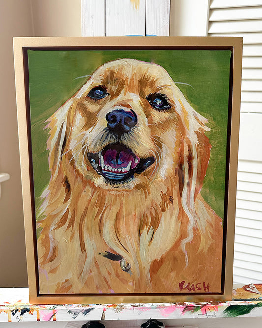 Custom Acrylic Painting on Canvas Pet Portrait – Framed in Gold Floater Frame